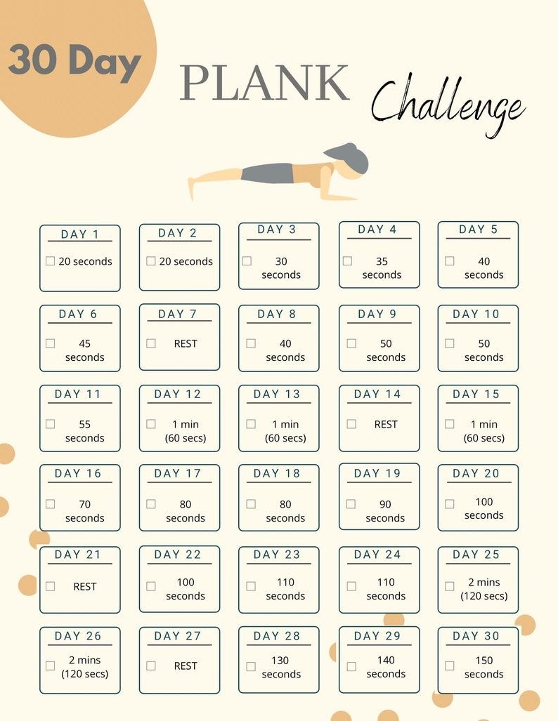 Download and Print 30 Day Plank Challenge Printable Listed below