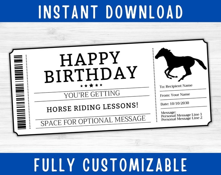 Birthday Horse Riding Lessons Ticket Gift Surprise Horseback Ticket