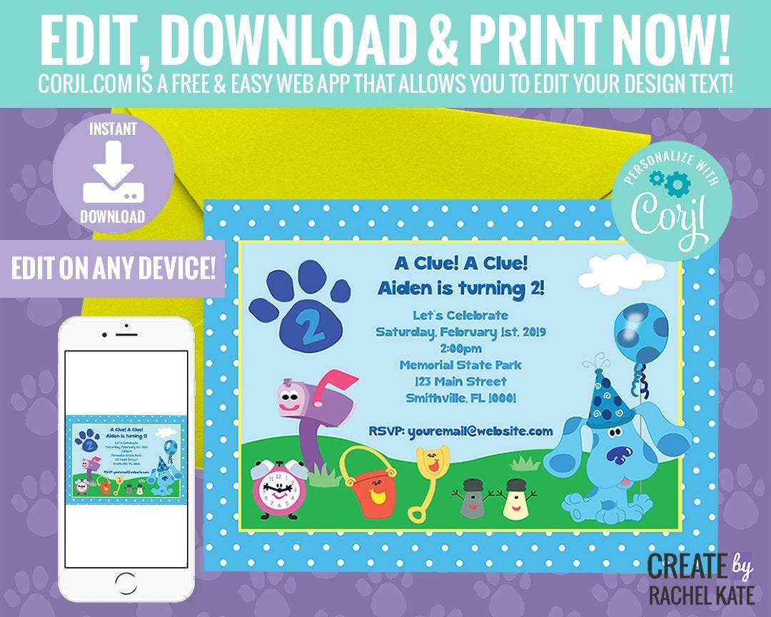 Blues Clues Invitation Template Free Blues Clues Birthday Etsy