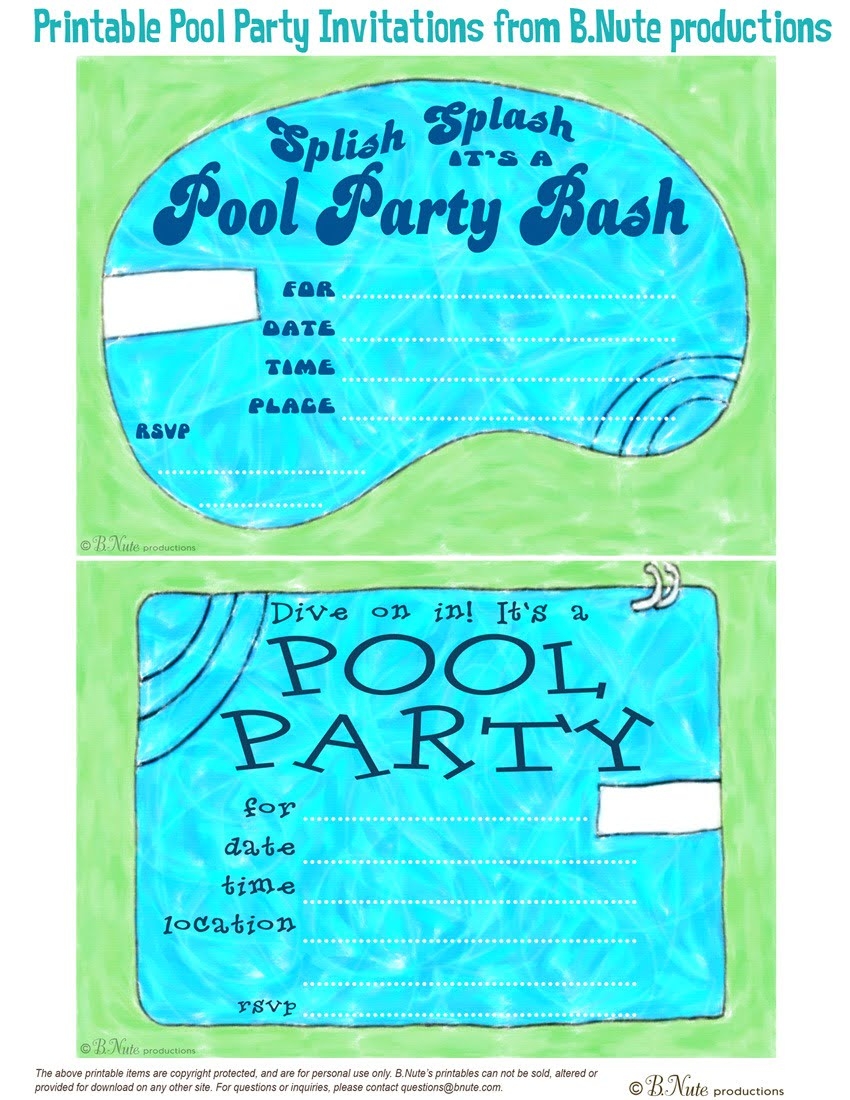 Download and Print Free Printable Swim Party Invitations Listed below