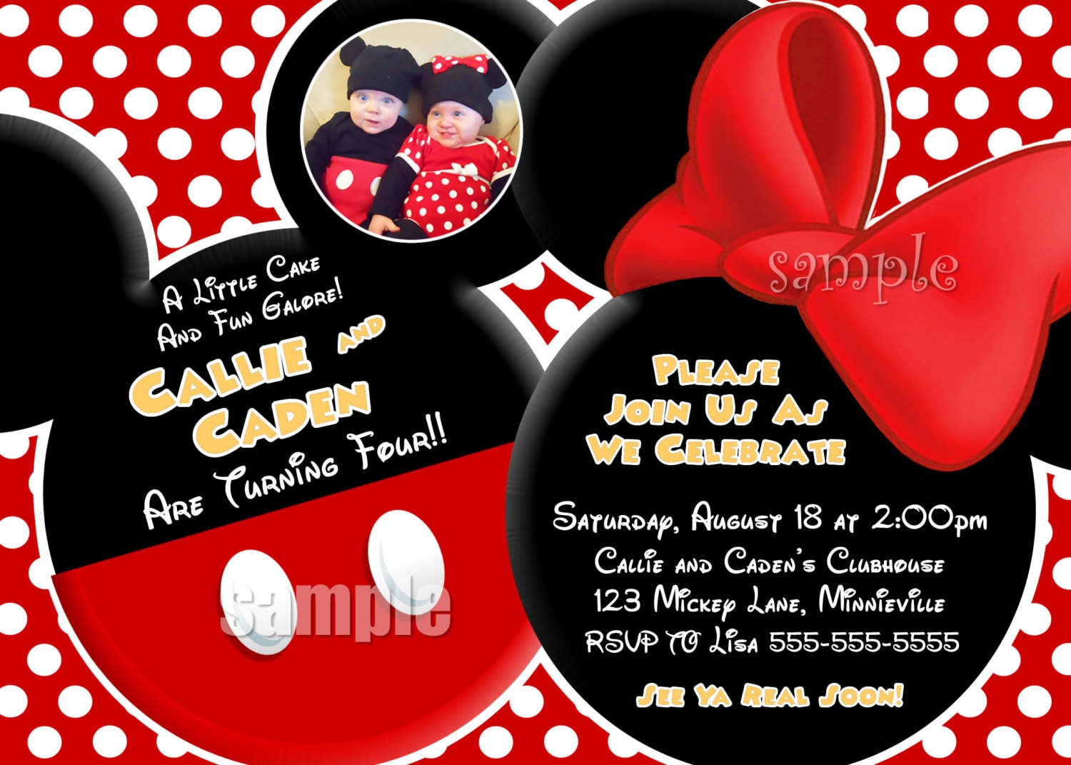 Twin Mickey Mouse Clubhouse FREE Printable Birthday Invitation