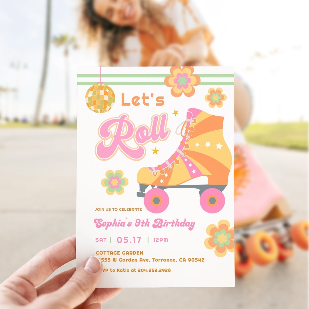 Roller Skate Party Invitation Template Let 39 S Roll Birthday Groovy